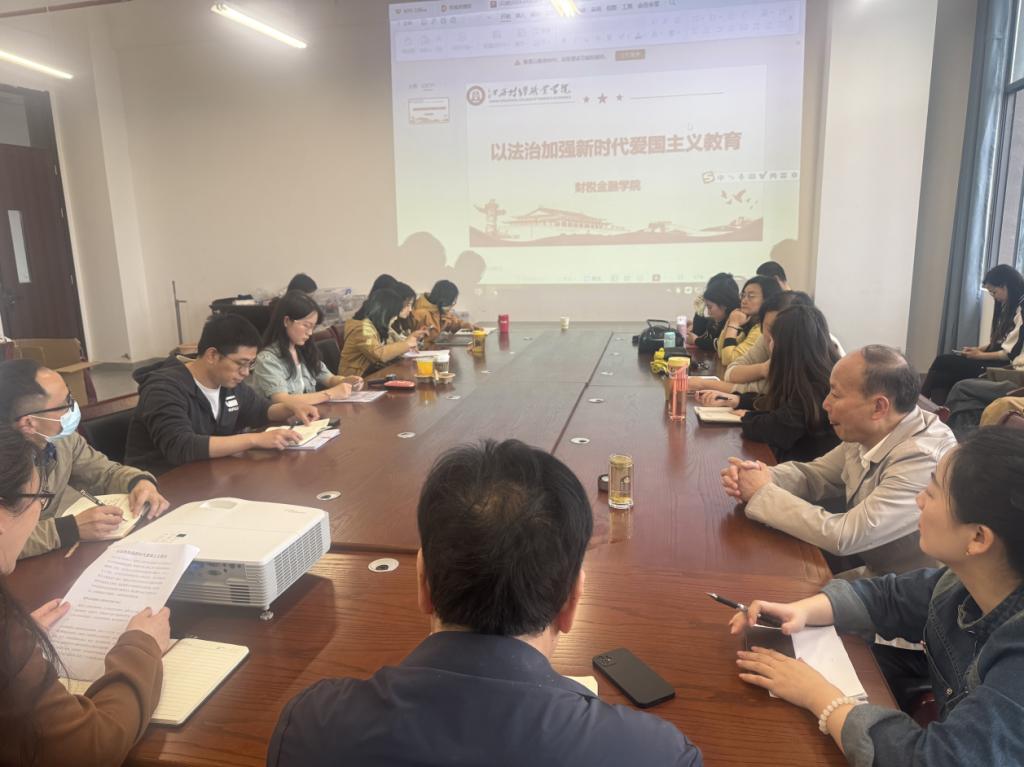 4月2日下午,財(cái)稅金融學(xué)院在八里湖校區(qū)洙泗學(xué)館B101舉辦了一場(chǎng)以法治加強(qiáng)新時(shí)代愛國(guó)主義教育的活動(dòng)。此次活動(dòng)由黨總支副書記王怡然主持,全體教職工齊聚一堂,共同學(xué)習(xí)探討如何在新時(shí)代背景下,通過法治力量進(jìn)一步加強(qiáng)愛國(guó)主義教育。