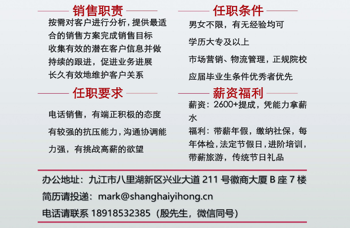 上海羿弘船務有限公司于2021年在上海成立,是經中華人民共和國交通運輸部批準成立的無船承運人(NVOCC)之一。公司專業經營國際貨物運輸業務,向海內外客戶提供海、陸、空進出口貨物運輸服務,包括訂艙、配載、報關、倉儲、提運、保險以及多項物流服務,業務涵蓋:普貨、一般化工品、危險品、大型工程項目、及大型貨物運輸等。本次招聘的主要崗位是國際貨代業務員。