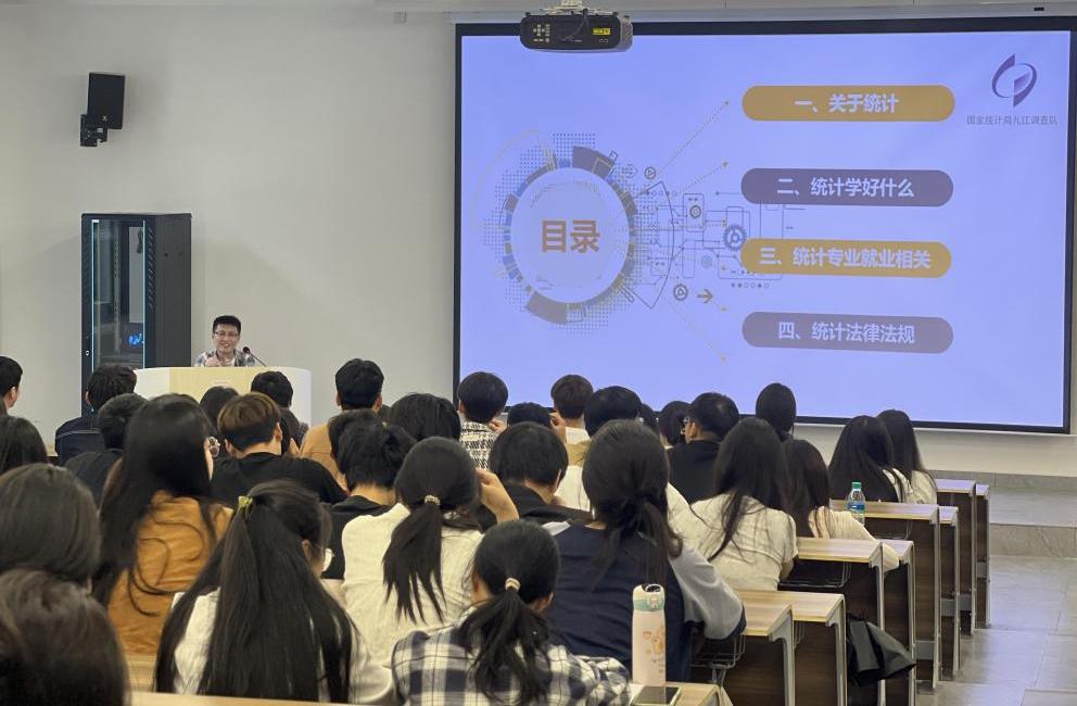 2024年4月24日下午,數字經濟學院邀請國家統計局九江調查隊的技術骨干張鈺弦為23級統計類專業學生開展“輕輕松松學好統計”的專題講座。國家統計局九江調查隊綜合執法科科長張璐璐、數字經濟學院統計調查教研室全體教師和100余名學生共同參加了這次講座。