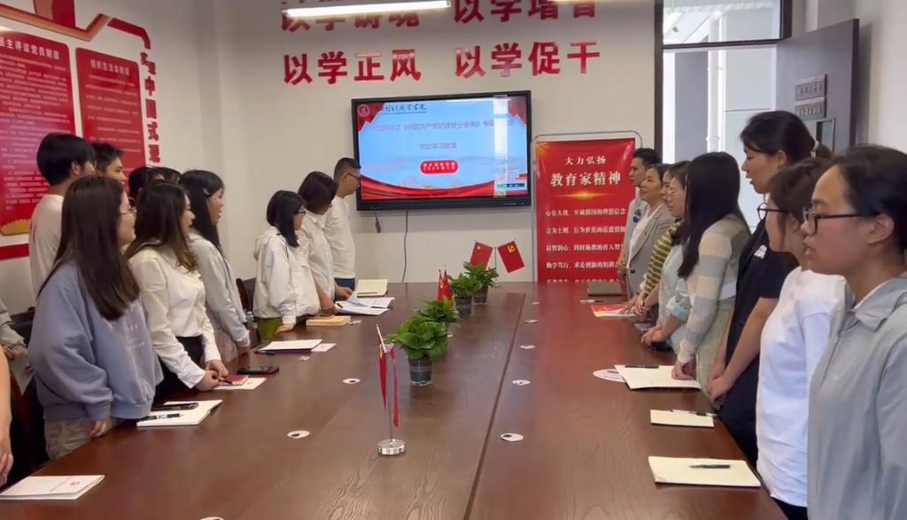 大家集中觀看了學(xué)習(xí)教育片《黨紀(jì)學(xué)習(xí)教育開課了》,學(xué)習(xí)了解《中國共產(chǎn)黨紀(jì)律處分條例》歷次修訂詳情。胡紅霞指出,開展黨紀(jì)學(xué)習(xí)教育,是加強黨的紀(jì)律建設(shè)、推動全面從嚴(yán)治黨向縱深發(fā)展的重要舉措。新修訂的《中國共產(chǎn)黨紀(jì)律處分條例》是學(xué)習(xí)貫徹習(xí)近平新時代中國特色社會主義思想和黨的二十大精神的具體行動,是黨中央站在新的歷史起點上,對全面從嚴(yán)治黨、加強黨的紀(jì)律建設(shè)進(jìn)行的再部署、再動員,作為中國共產(chǎn)黨黨員和人民教師,應(yīng)當(dāng)積極強化政治理論學(xué)習(xí)、提高政治站位、深刻理解并貫徹執(zhí)行新修訂的《中國共產(chǎn)黨紀(jì)律處分條例》精神,以更高標(biāo)準(zhǔn)要求自己,牢記為黨育人、為國育才的初心使命,聚焦主業(yè)主責(zé),凸顯實干擔(dān)當(dāng),引導(dǎo)教育學(xué)生樹立正確的世界觀、人生觀和價值觀。要在崗位上做好表率,保持良好的工作作風(fēng)和形象,以實際行動堅定擁護(hù)“兩個確立”、堅決做到“兩個維護(hù)”。胡紅霞重點剖析了違紀(jì)典型案例,以案說紀(jì),指出學(xué)黨紀(jì)做到四個務(wù)必:一是學(xué)《條例》,從身邊人身邊事中受警醒;二是學(xué)《條例》,矯正言行、遵規(guī)守紀(jì);三是學(xué)《條例》,增強干事創(chuàng)業(yè)積極性;四是學(xué)《條例》,提升依規(guī)依紀(jì)依法履職水平。