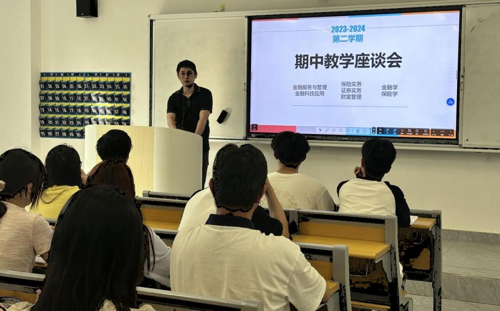 為傾聽師生心聲,提升教育教學質量,5月15日下午,財稅金融學院在洙泗學館B109舉行金融類專業期中教學座談會。金融類專業全體教師以及金融服務與管理、金融科技應用、保險實務、證券實務、財富管理、保險實務、金融學、保險學等專業班級學生代表參會。