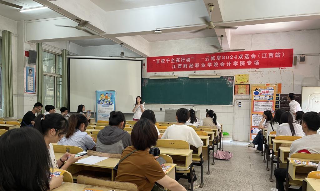 為了給我院2024屆畢業(yè)生提供更多的專業(yè)對(duì)口的就業(yè)崗位,促進(jìn)畢業(yè)生高質(zhì)量充分就業(yè)。5月17日上午,我院聯(lián)合云賬房誠邀南昌樂興財(cái)務(wù)管理有限公司、江西合祥財(cái)務(wù)有限公司、南昌聚錦天企業(yè)咨詢服務(wù)有限公司、江西慧信財(cái)務(wù)股份有限公司、貞元代理記賬有限公司等五家財(cái)務(wù)公司,在潯陽校區(qū)教學(xué)樓107教室舉辦“百校千企在行動(dòng)”專場招聘會(huì)。此次招聘會(huì)共提供財(cái)務(wù)類專業(yè)崗位70余個(gè)。
