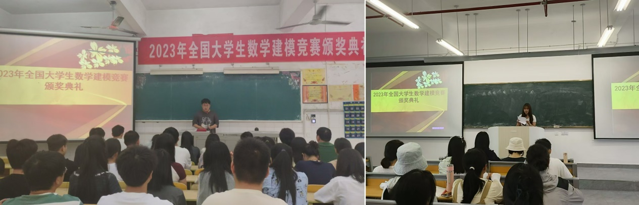 典禮上,主持人首先簡單介紹了全國大學生數(shù)學建模競賽這一賽事,講述了我校參加競賽的歷程以及取得的優(yōu)異成績。然后,優(yōu)秀指導教師代表呂揚(潯陽校區(qū))和王雨晴(八里湖校區(qū))、獲獎學生代表2022級信息安全技術應用1班周柱岑同學(潯陽校區(qū))和2022級金融服務與管理1班鐘燕同學(八里湖校區(qū))上臺發(fā)言。