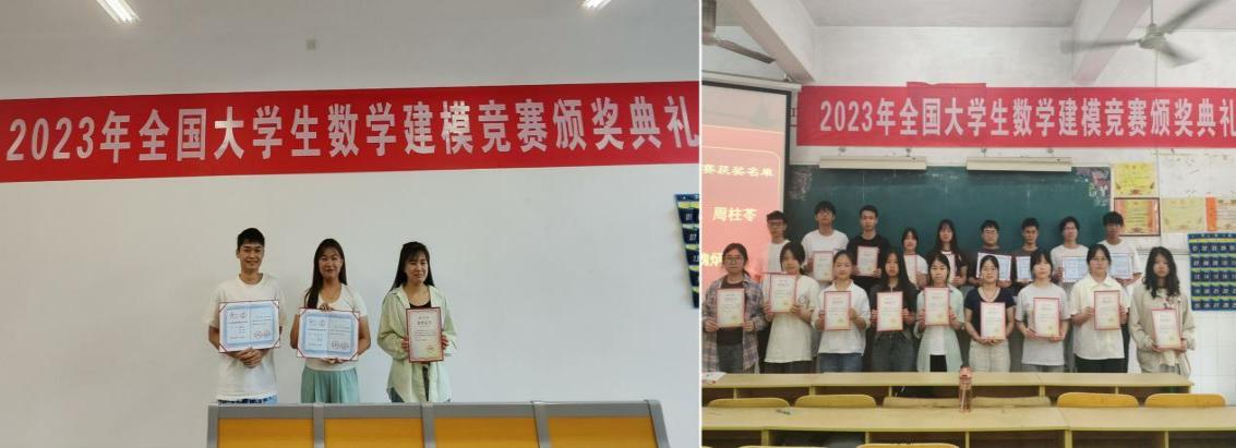 最后,主持人宣布為2023年全國大學生數(shù)學建模競賽獲獎學生頒獎。2023年,我校共榮獲國家二等獎2項、江西省一等獎2項,江西省二等獎3項。在熱烈的掌聲中,七支代表隊的21名同學上臺領獎,與會領導和指導老師為獲獎學生頒發(fā)了獲獎證書。