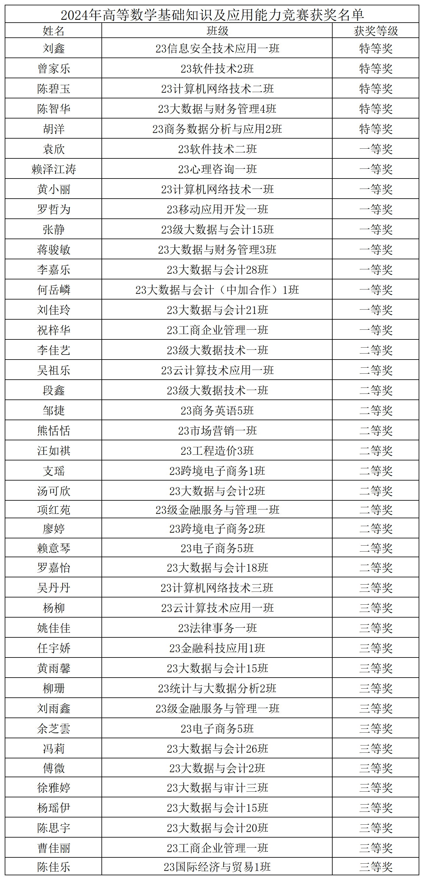 本次高等數學基礎知識及應用能力競賽順利舉辦,既彰顯了我校學子求知好學的態度和良好的數學應用能力,又展現了我校持續推進理論課堂與學科競賽有機結合的成果。下一步,我們將進一步創新教育模式,整合優勢資源,提升教學質量,培養新時代技術技能人才。