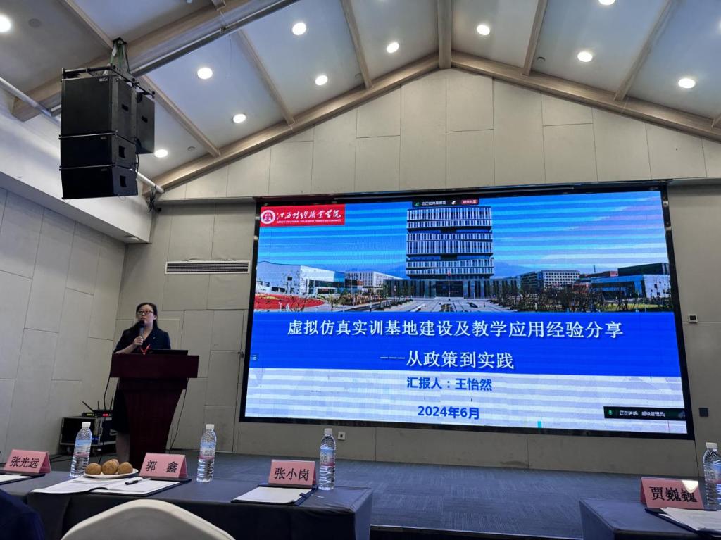王怡然在研討會上開展了一場以《虛擬仿真實訓基地建設及教學應用經驗分享---從政策到實踐》為主題的講座,分享了我校發展的基本情況和在華東智慧金融職業教育虛擬仿真實訓基地建設和資源開發及應用方面的探索和典型經驗。