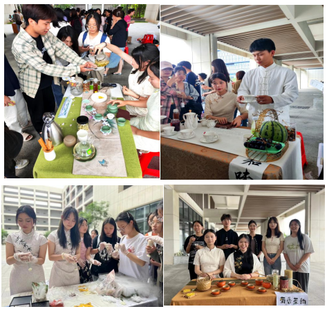 此次活動以“一起來呷茶——修水茶俗體驗”為主題,分為修水茶俗體驗和創新茶飲品鑒兩部分。在專業老師的指導下,茶藝隊的同學們身著中華傳統服飾,親手制作茶點,調配檸檬寧紅、寧紅奶茶、菊花雙井、茉莉雙井等茶飲,邀請各位同學品鑒。活動吸引了廣大愛茶人士的參與,大家一起交流品鑒,共赴茶文化盛宴。