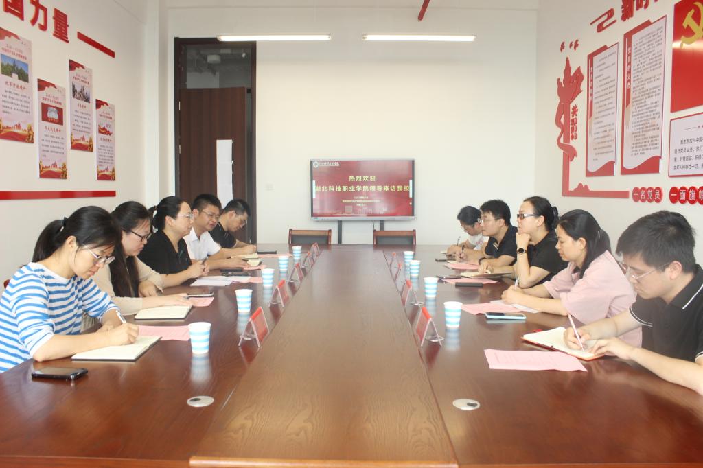 6月21日上午,數(shù)智服務行業(yè)產教融合共同體建設單位湖北科技職業(yè)學院、新道科技股份有限公司領導一行蒞臨會計學院考察調研,此行由湖北科技職業(yè)學院經(jīng)貿學院院長劉志華帶隊,會計學院院長萬凱,副院長譚玉林、齊潔,財稅金融學院黨總支副書記(主持工作)王怡然,金融教研室主任龔奕等熱情接待了劉志華一行。