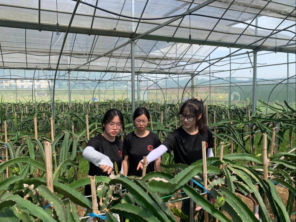 隨后,實踐隊來到了火龍果種植園區(qū),隊員們被這片充滿生機的綠色所吸引。他們認真聆聽了劉總關(guān)于火龍果種植技術(shù)的介紹,并紛紛提出了自己的見解和想法。其中,網(wǎng)絡(luò)直播銷售的想法得到了大家的廣泛認可,通過直播,消費者可以更加直觀地看到火龍果從生長到成熟的全過程,這無疑將進一步拓寬火龍果的銷售渠道,提升產(chǎn)品的知名度和市場競爭力。在交流過程中,有隊員向劉總詢問了關(guān)于自身所學(xué)知識能否應(yīng)用在相關(guān)農(nóng)業(yè)領(lǐng)域的問題,劉總十分熱情地向隊員們介紹了產(chǎn)業(yè)園所運用的技術(shù),如智能控溫調(diào)節(jié)、實時檢測系統(tǒng)等。這些技術(shù)都是隊員們所學(xué)的專業(yè)知識運用,鼓勵他們將所學(xué)計算機相關(guān)知識轉(zhuǎn)化為實踐成果,為農(nóng)業(yè)發(fā)展貢獻自己的力量。