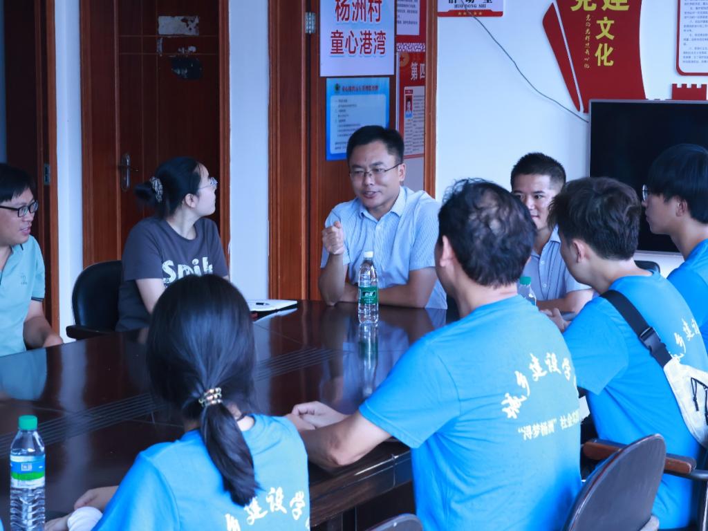 圖為:“潯夢楊洲”社會實踐隊成員與村支書溝通本次實踐活動安排。