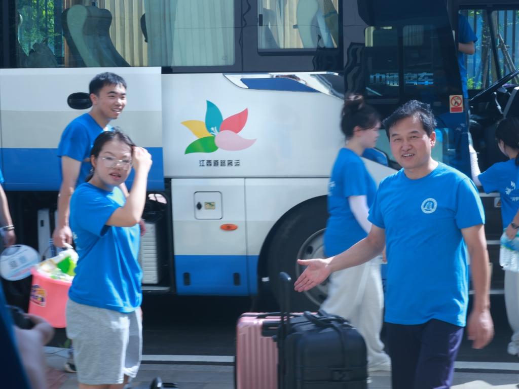 圖為:“潯夢楊洲”社會實踐隊準備出發前往武寧縣楊洲村開展暑期社會實踐活動。
