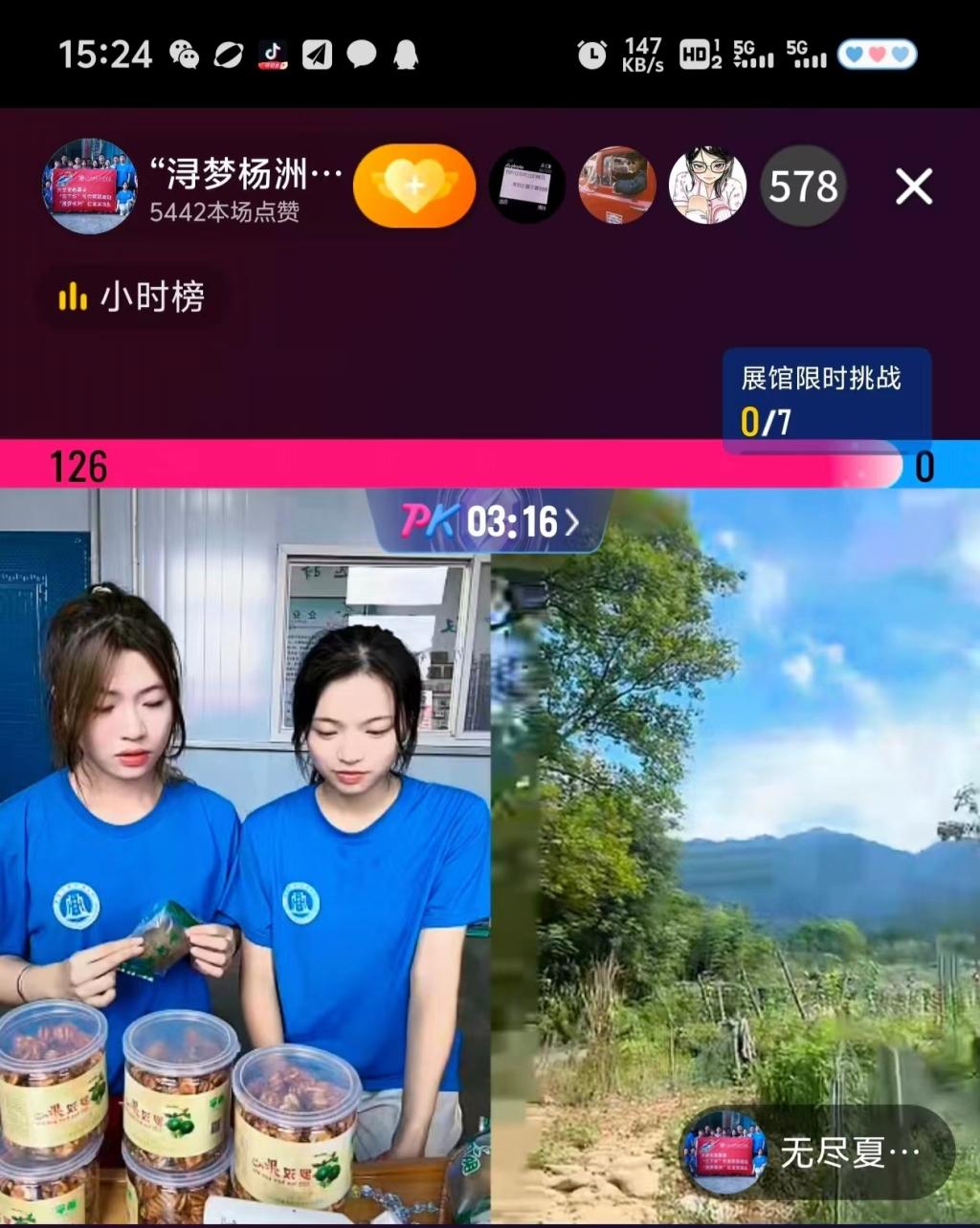 圖為:“潯夢楊洲”社會實踐隊在工廠與種植基地直播連線。
