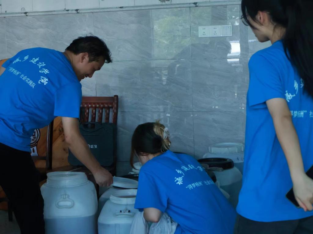 圖為:“潯夢楊洲”社會實踐隊在蜂農家考察蜂蜜