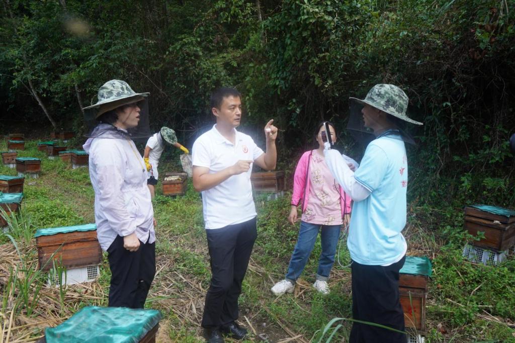 下午,實踐隊在中蜂養殖場開啟戶外直播,由江西省養蜂研究所劉鋒博士為實踐隊員和在線網友科普蜜蜂的相關知識,并在在蜂農的指導下實踐隊員親自體驗了割蜜、搖蜜全過程。