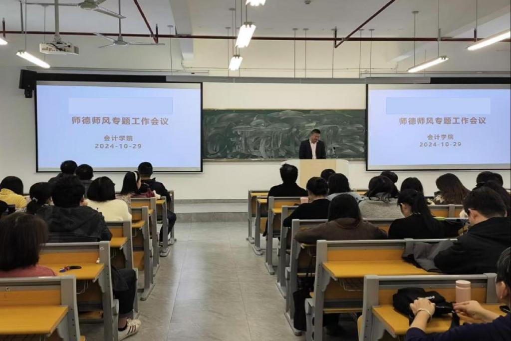 10月29日,會計學(xué)院在洙泗學(xué)館337教室召開了“師德師風(fēng)”專題工作會議。會議由會計學(xué)院副院長譚玉林主持,學(xué)院全體教師參加了此次會議。