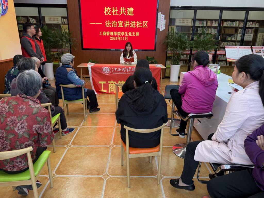 為增強社區居民的法律意識,促進法治社會建設,11月15日,工商管理學院學生黨支部深入孫家垅社區積極開展校社共建—法治宣講進社區活動,受到社區居民的熱烈歡迎與廣泛好評。