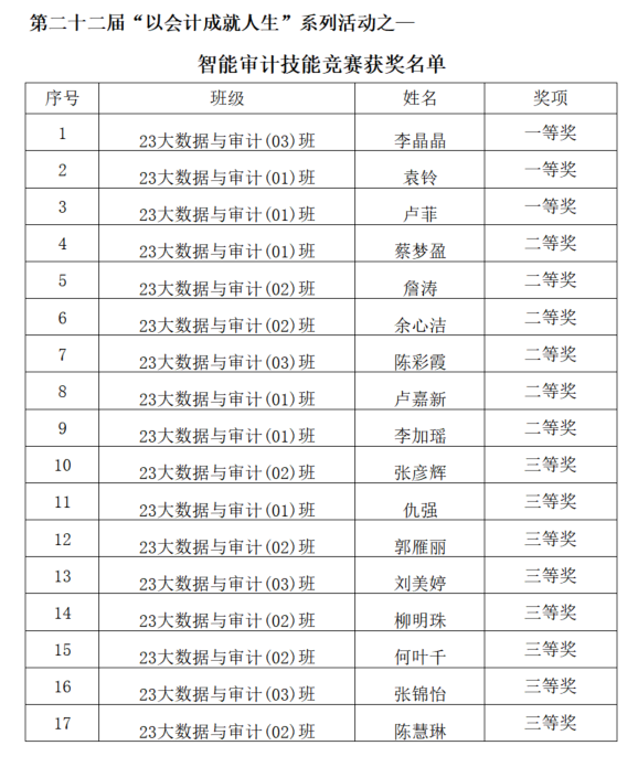 為積極響應數字經濟時代對審計人才的新要求,會計學院于2025年4月9日下午,在八里湖校區一號教學樓323教室成功舉辦了2025年度“以會計成就人生”系列活動之智能審計應用技能競賽。來自23級大數據與審計專業學子同臺競技,展現了新一代審計人才的專業素養和技術實力。