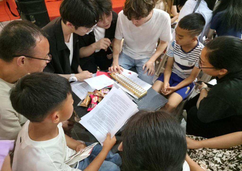比賽結束后進入交流互動環節。中方同學向外國友人和現場小朋友詳細介紹算盤的構造、原理和使用方法,參與者們認真聆聽、踴躍嘗試,在噼啪作響的算珠聲中感受千年智慧結晶。現場氛圍熱烈融洽,不少外國友人經過指導后已能完成基礎運算。