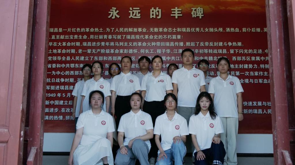 在洪一鄉(xiāng)瑞昌縣蘇維埃革命紀念館,300余件承載著革命記憶的紅色文物構(gòu)成了立體的紅色教材庫。泛黃的革命手稿上,“為勞苦大眾謀幸福”的字跡雖已模糊卻透著穿透時空的堅定;銹跡斑斑的軍號旁,擺放著記錄其在五次反“圍剿”中吹響沖鋒號的戰(zhàn)地日記;帶彈痕的旗幟上,還留存著紅軍戰(zhàn)士用鮮血浸染的暗紅印記。學(xué)生們在講解員引導(dǎo)下,循著“星火初燃”“浴血奮戰(zhàn)”“解放曙光”“精神傳承”四大紅色主題展區(qū),逐件研讀文物背后的紅色故事,凝視烈士墻上 300 多個名字,直觀了解當(dāng)?shù)馗锩鼩v程。“這些展品是先輩們用生命鐫刻的精神坐標,這些名字背后是用生命守護的紅色信仰,我們必須讓這份信仰永遠鮮活。”2023級會計專業(yè)學(xué)生周志晨的感言,道出了師生共同的體悟。