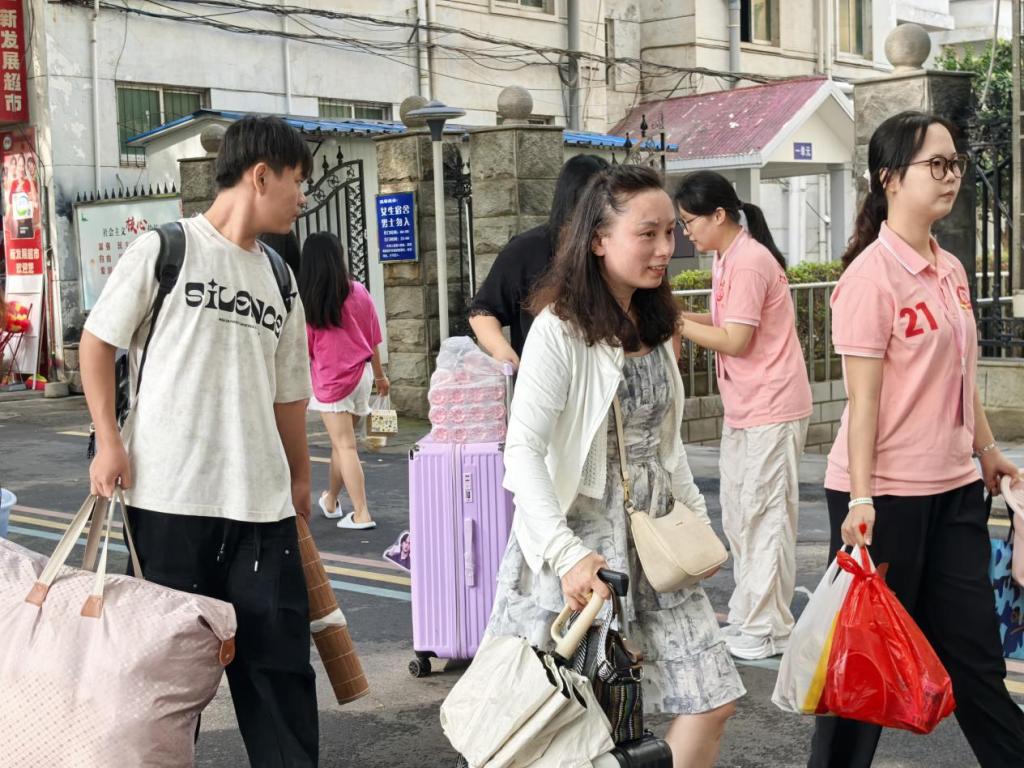 會計學院黨總支注重細節與服務實效,不僅設立了固定的迎新服務站,還安排了流動志愿者進行巡視。從校門口到報到點,隨處可見志愿者們忙碌的身影。他們身著統一服裝,熱情主動地迎上前,為新生提供“引導路線—掃碼報到—核驗身份—宿舍安排”等一站式的服務,確保報到流程的順暢無阻,高效完成新生入學報到工作。