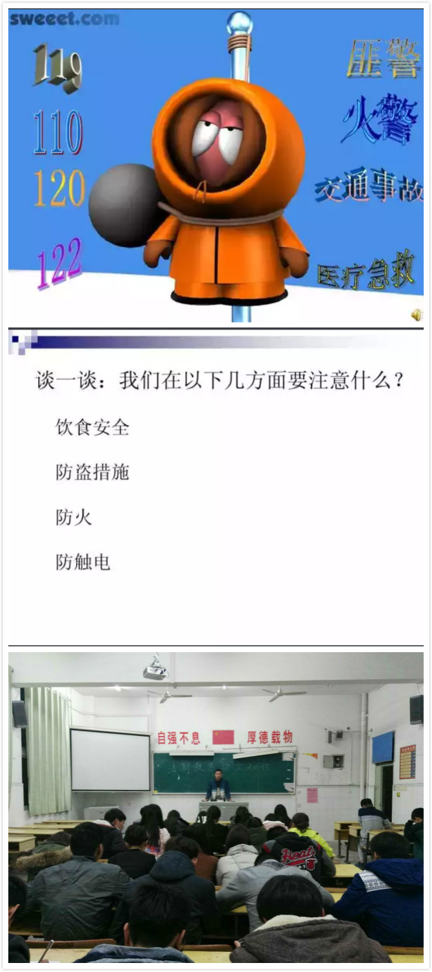 開展安全教育活動,上好開學安全第一課。各班級通過召開《安全教育》、《法制教育》、《我為文明財院代言》主題班會、團課、學習《江西省學校學生人身傷害事故預防與處理條例》、制作黑板報等宣傳教育活動,提高大學生安全意識,增強自我防范能力,掌握安全技能,引導大學生知法、懂法、守法,對自己負責、對家人負責、對社會負責,向愛護自己的眼睛一樣維護校園的和諧穩定環境,成為平安財院、文明財院、和諧校園的建設者,成為社會主義核心價值觀的踐行者。
