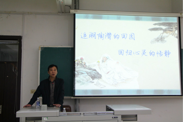 2016年4月20日晚7時在綜階一教室,會計第二學院請學校基礎課教學部沈克旻老師為會計第二學院團總支、學生會干部及干事進行了《追溯陶潛的田園 回歸心靈的恬靜》講座。