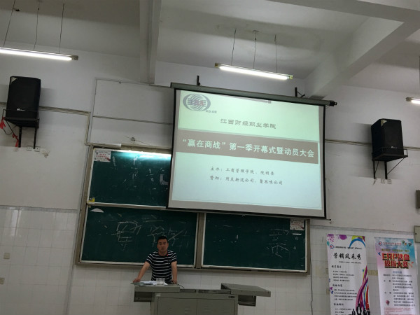 4月20日,工商管理學院在教學樓617教室召開了江西財經職業學院“贏在商戰”第一季系列活動開幕式暨動員大會。九江友信科技公司王超總經理、九江聚思味公司廖明強總經理、校團委青工書記葉睿老師、工商管理學院黨政班子、全體老師和來自工商管理學院、會計第一、二學院、經貿學院、本科部等院系的部分參賽同學參加了此次大會。