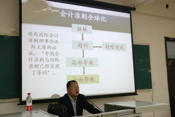 講座從三個方面展開,首先從經濟時代背景介紹了我們國家會計準則的制定正處于從局部等效走向全面等效的階段,并結合“什么是會計”、“何為借貸”等問題并進行了專業的分析;接著,從會計的含義、賬務的處理程序、財務與會計的關系、會計信息的使用者、會計要素計量屬性等方面,結合一些具體生動的案例進行闡述;最后就如何學好會計學專業進行了引導并提出許多合理化建議,李寧教授強調說,新入門的同學們,要從現實生活的角度著重培養對會計學的興趣,擁有廣闊的視野,學會思考,做一位全方位的會計應用型人才。