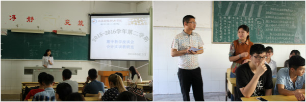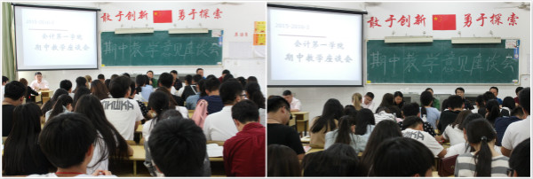 第三階段——以教研室為單位召開的教學(xué)座談會(huì)。5月5日下午,以教研室為單位分別在教學(xué)樓408、409、410、411教室召開了期中教學(xué)座談會(huì)。此次座談會(huì)主要由各專業(yè)教師面對(duì)學(xué)生代表,各教研室主任及各課程組教師代表與我院14、15級(jí)近200名學(xué)生代表共同參加了此次活動(dòng)。座談會(huì)上氣氛熱烈,同學(xué)們暢所欲言,分別圍繞課程設(shè)置、教學(xué)內(nèi)容、教學(xué)方法與方式、教學(xué)效果、職業(yè)資格證書考試等主題提出了自己的困惑與建議。與會(huì)的教師認(rèn)真聽取了意見并進(jìn)行了詳細(xì)的記錄與解答。針對(duì)部分同學(xué)所提出的企業(yè)會(huì)計(jì)業(yè)務(wù)核算、企業(yè)財(cái)務(wù)管理、財(cái)務(wù)報(bào)表審計(jì)、成本核算實(shí)務(wù)、財(cái)稅信息化及會(huì)計(jì)基礎(chǔ)實(shí)訓(xùn)等課程的學(xué)習(xí)方法問題,與會(huì)的領(lǐng)導(dǎo)、老師也與同學(xué)們進(jìn)行了深入的交流并提出了許多寶貴的建議。