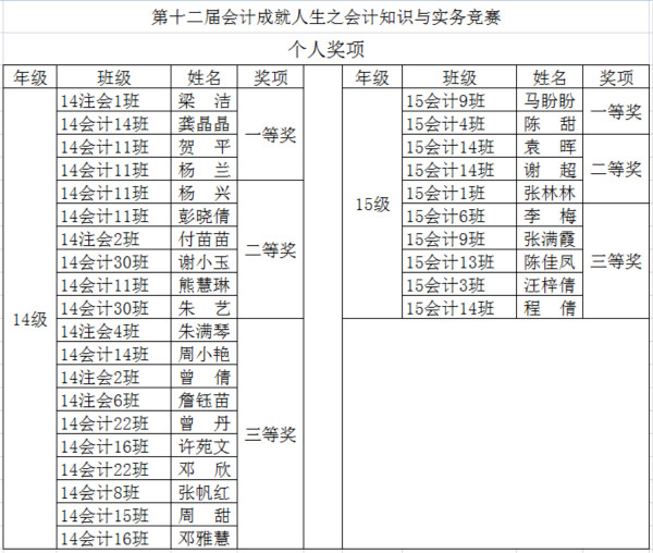 會計知識與實務技能競賽(初賽)既是一場考核同學們個人綜合素質的大賽,也是一場決定參賽班級能否晉級總決賽的重要賽事。各班均高度重視,認真組織,選派精英選手參賽。競賽通過模擬企業(yè)發(fā)生的常規(guī)經濟業(yè)務,全面、深入地考核了同學們對會計理論知識與實務操作相結合的綜合能力。比賽中,同學們沉著冷靜,審慎思考,仔細作答,充分發(fā)揮了個人的專業(yè)技能水平,展現了我院學生良好的專業(yè)知識素養(yǎng)和扎實的實務操作能力。經過90分鐘的激烈比拼, 14會計11班、15會計14班等12支班級代表隊最終脫穎而出,獲得了參加此次總決賽的入場券;14注會1班梁潔、15會計9班馬盼盼等30名同學獲得個人單項獎。