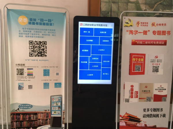 會上,熊水金對近期“兩學一做”學習教育的總體要求、主要內容、方法措施進行了詳細介紹。圖書館為助力我院“兩學一做”學習教育活動開展,充分利用電子圖書自助借閱機服務平臺開設的“兩學一做” 主題圖書電子版及相關熱點學習資料專區。“兩學一做”專區中《四個全面黨員干部讀本》、《學習黨章·遵守黨章·貫徹黨章·維護黨章學習參考》、《中國自信-民族復興大思維》、《關鍵在黨》、《社會主義核心價值觀學習讀本》等書籍及資料一應俱全,操作起來也十分便捷,讀者可以在線閱讀,也可以通過“超星移動圖書館”手機APP掃碼下載文獻資源。