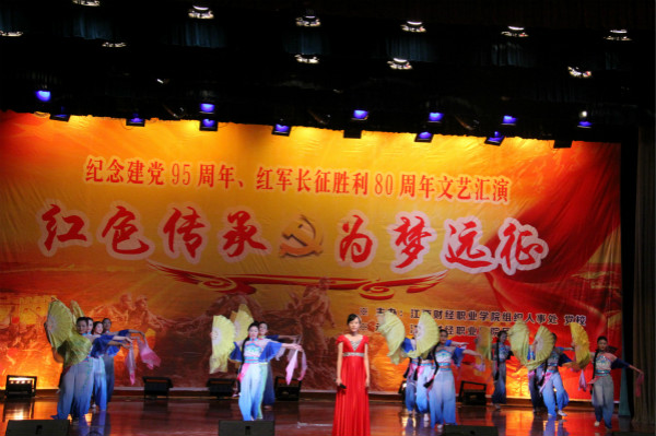 為迎接黨的生日,慶祝偉大的中國共產黨走過95周年崢嶸歲月,我院精心組織了配樂詩朗誦《破曉的曙光》、歌伴舞節目《沂蒙頌》參加學校舉辦的“慶祝建黨95周年、紅軍長征勝利80周年”文藝匯演。6月28日,期待已久的文藝匯演如期而至。沉穩堅毅的配樂詩朗誦《破曉的曙光》歌頌了偉大的中國共產黨的誕生給中華大地帶來了曙光,這輪曙光點亮了中國革命的前程。歌伴舞《沂蒙頌》中優美的歌聲及曼妙的舞蹈完美地詮釋了軍民如水一家親的深情厚誼。最終,經過評選,歌伴舞《沂蒙頌》獲得了二等獎的好成績。