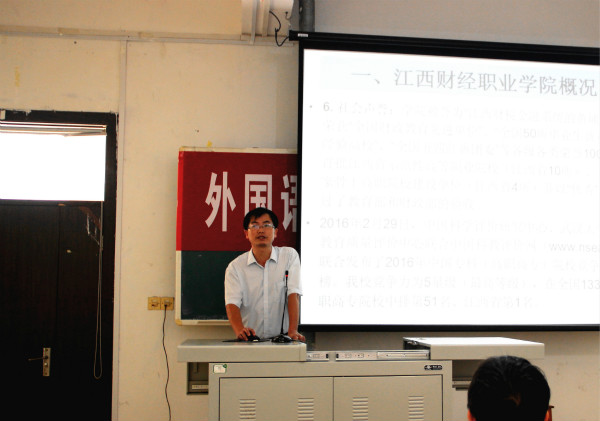王勝華作了主題為“我的夢(mèng)---從外國(guó)語(yǔ)學(xué)院起航”的講話。他代表外國(guó)語(yǔ)學(xué)院全體師生對(duì)新同學(xué)的到來(lái)表達(dá)熱烈的歡迎,向同學(xué)們介紹了江西財(cái)經(jīng)職業(yè)學(xué)院悠久的辦學(xué)歷史和良好的社會(huì)聲譽(yù)及外國(guó)語(yǔ)學(xué)院師資力量、實(shí)訓(xùn)條件、專(zhuān)業(yè)特色和就業(yè)優(yōu)勢(shì),并提出了四點(diǎn)希望:一、希望同學(xué)們學(xué)會(huì)生活,學(xué)會(huì)自立,適應(yīng)新的學(xué)習(xí)、生活環(huán)境;二、希望同學(xué)們樹(shù)立自信,做陽(yáng)光青年;三、希望同學(xué)們學(xué)會(huì)學(xué)習(xí),奮發(fā)向上,努力成為知識(shí)與技能的“土豪”;四、正確認(rèn)識(shí)并利用好網(wǎng)絡(luò)。
