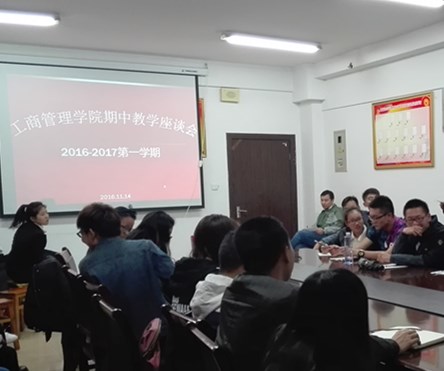 為進一步規范教學管理,及時了解教學動態,切實提高教育教學質量,11月14日晚,工商管理學院在綜合樓903辦公室召開2016-2017學年第一學期期中教學座談會。院長馮弋江教授、院黨總支書記胡紅霞教授、武丹副院長、各教研室主任、相關專業教師和各班學生代表參加了座談會。