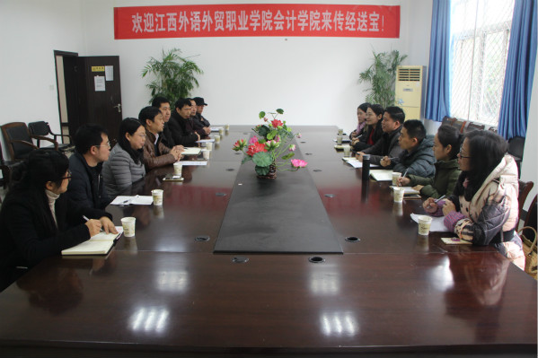 2017年2月23日上午,江西外語外貿(mào)學(xué)院會(huì)計(jì)學(xué)院張美忠院長(zhǎng)一行來我院考察交流。會(huì)計(jì)第二學(xué)院院長(zhǎng)李洪春、副院長(zhǎng)蘇毅、會(huì)計(jì)第一學(xué)院副院長(zhǎng)萬凱熱情迎接了張美忠院長(zhǎng)一行,會(huì)計(jì)第二學(xué)院各教研室主任參加了交流。