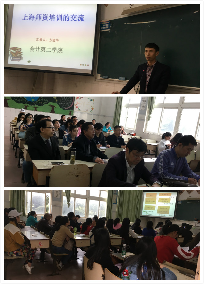 4月5日下午,會計第二學院在教學樓202教室開展“黨建+”系列活動——教師外出培訓交流講座,本次講座由方道華副教授主講,講座內容為參加上海師資培訓后的感想。會計第二學院黨政領導、全體教師、行政兼課教師及外聘教師近50余人參加了此次活動。