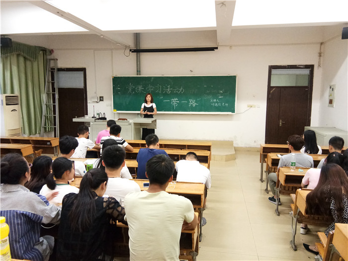 為加強學生黨員的政治理論學習,6月18日晚7點整,在綜合樓階梯教室3,經貿旅游學院學生黨支部邀請黨員老師葉逸筠同志以“一帶一路”為主題對學生黨員進行黨課培訓,經貿旅游學院學生黨支部70余名學生參加了培訓活動。