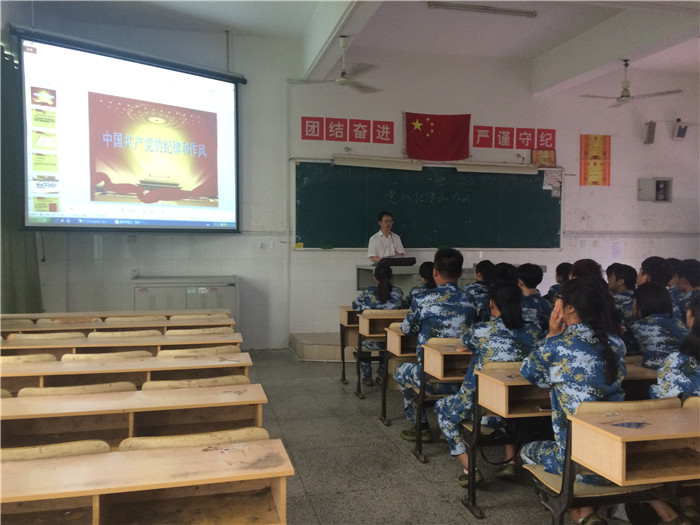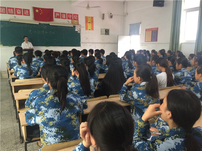 全體新生身著軍訓(xùn)服,在教官的引領(lǐng)下,列隊(duì)井然有序進(jìn)入教室,入座后,軍帽整齊擺放在課桌上,個(gè)個(gè)坐姿筆直,精神抖擻,聚精會(huì)神,認(rèn)真聽(tīng)課,展現(xiàn)出了軍訓(xùn)的明顯成效和良好的精神風(fēng)貌。
