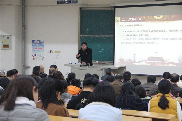 12月11日19時(shí),會(huì)計(jì)第二學(xué)院黨總支在綜合樓階梯五教室召開(kāi)支部大會(huì)學(xué)習(xí)宣傳黨的十九大精神。二院教職工黨員、學(xué)生黨員及發(fā)展對(duì)象150多人參加了學(xué)習(xí),學(xué)生黨支部書(shū)記宋曉婷同志主持。