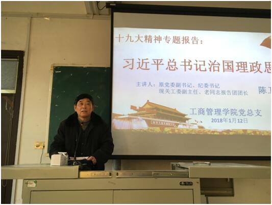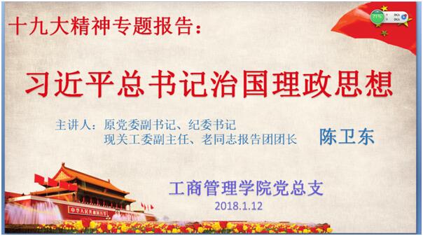 為切實把思想和行動統一到習近平新時代中國特色社會主義思想上來,統一到黨的十九大確定的重大決策部署上來,工商管理學院于1月12日在綜合樓階梯教室1舉辦了《認真學習、深刻領會、切實貫徹習近平總書記治國理政思想》專題講座。工商管理學院師生黨員參加了學習。