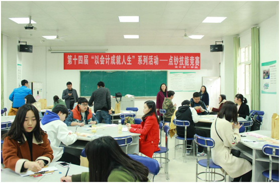 為激發同學們的專業學習興趣,檢驗專業技能水平,提高動手操作能力,豐富校園文化生活,2018年3月22日下午,會計第一學院在會計實訓中心的會計基本技能實訓室舉辦了第十四屆“以會計成就人生”系列活動——點鈔技能大賽,來自我院16、17級會計專業和本科部16、17級會計學專業的近120名學生參加了此次競賽。