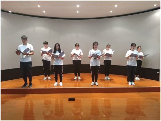 在17級工商企業管理2班馮甲樂同學演唱的歌曲《祖國慈祥的母親》中,比賽正式拉開帷幕。各支隊伍靈活采取多樣的朗誦形式,時而個人獨誦,時而兩人對誦,時而集體吟誦,并在或深情或激昂的音樂伴奏下,穿插了豐富多彩的陣型及形體表演,充分展現了詩歌朗誦的藝術感染力和舞臺表現力。各支隊伍的朗誦詩文更是精挑細選,充分潤飾,或歌頌仁人志士的英偉事跡,以青春的名義向榜樣致敬,或抒發有為青年的鴻鵠之志,以青春的力量吹響前進號角。參賽同學以飽滿的熱情、生動的語言、得體的舉止贏得了現場觀眾的陣陣掌聲。此外,在比賽間隙,林力、康港明兩位同學共同演唱了歌曲《白羊》、《紙短情長》,蘭夏鵬同學帶來了爵士舞表演。他們的表演不僅緩解了緊張激烈的比賽氣氛,也給比賽增添了別樣的色彩。