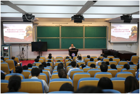 為深入貫徹十九大精神,準(zhǔn)確把握十九大關(guān)于黨建工作的新要求,堅(jiān)持黨要管黨,全面從嚴(yán)治黨,走在時(shí)代前列。6月19日下午,機(jī)關(guān)黨總支在綜合樓學(xué)術(shù)報(bào)告廳舉辦了專題黨課講座。講座由江西省委教育工委組織部、江西省教育廳人事處調(diào)研員楊聯(lián)愚同志主講,校黨委委員、副校長(zhǎng)張成斌主持,機(jī)關(guān)黨總支136位黨員同志聆聽(tīng)了講座。