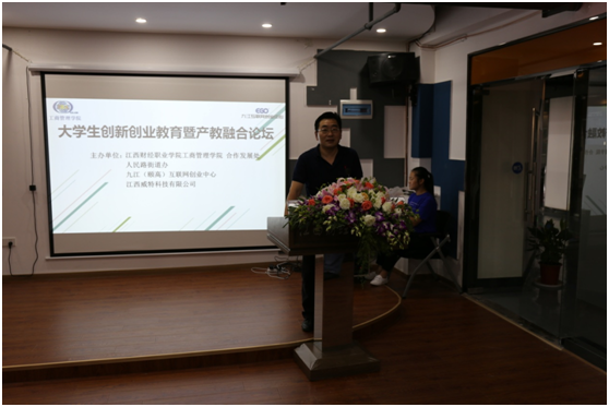 為進一步深化“雙創”教育、推進產教融合,工商管理學院、合作發展處聯合人民路街道辦、九江(頤高)互聯網創業中心、江西威特科技有限公司于6月14日共同舉辦了首屆大學生創新創業教育暨產教融合論壇。出席論壇的領導和嘉賓有校教務處處長程文忠教授、合作發展處處長周執平教授、人民路街道辦副主任李俊斌、九江(頤高)互聯網創業中心運營總監劉吉喆、江西威特科技有限公司總經理王超、九江展新汽車貿易有限公司總經理周晟及工商管理學院黨政班子。學院部分師生及九江互聯網創業中心的部分企業代表共計80余人參加了論壇。論壇由工商管理學院唐朝莉副教授主持。