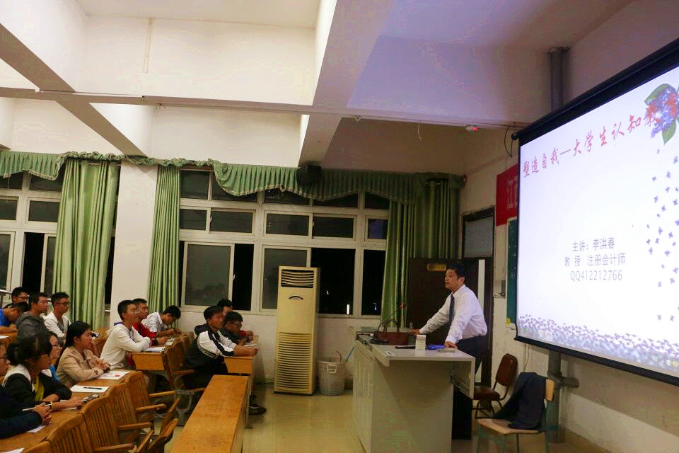 為使18級本科新生盡快適應大學生活,本科部特邀請江西財經職業學院會計第二學院院長、中國注冊會計師李洪春教授為新生開展“塑造自我——大學生認知教育”主題講座。18級全體新生悉數到場聆聽講座。