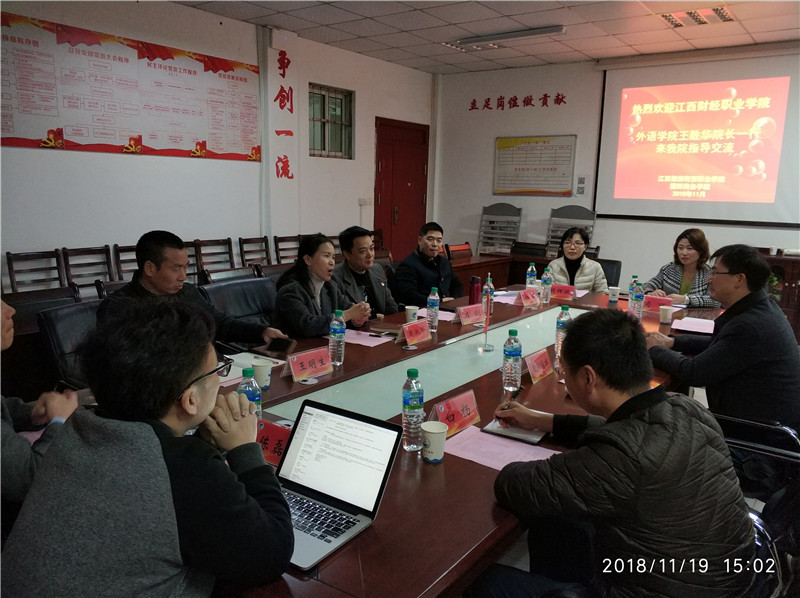 11月19日-20日,外國語學院負責人、黨政辦公室主任、大學英語教研室主任以及經貿學院教研室主任赴江西經濟管理干部學院外語系、江西旅游商貿職業學院國際商務學院和江西外語外貿職業學院英語學院和國際商務學院考察交流。