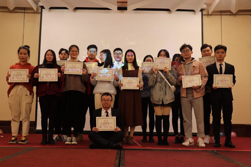 晚會后辦公室老師為學生會老部長、電子商務協會部長頒發聘書,并合影留念。