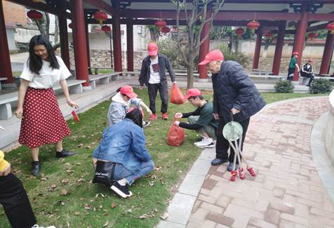 9點20分同學們到達九江市老年福利服務中心。志愿者們主動清掃敬老院衛生,同學們邊勞動邊和老人們聊天,樂此不疲,聆聽老人們講述她們年輕時候的故事。同學們還準備了舞蹈、對唱等節目,合唱《我愛我的祖國》,更是贏得老人們陣陣掌聲,活動氣氛熱鬧。