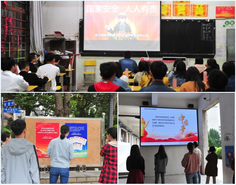 本次宣傳教育活動充分利用LED電子屏、黑板報、展板、學校主頁、新媒體等渠道,通過組織學生集中觀看國家安全宣傳教育和警示視頻,在人流量較大的教學樓、學校主干道擺放展板,微信公眾號推送國家安全法解讀、憲法關于國家安全的規定和網絡安全法解讀等多種形式,豐富國家安全宣傳內容,在校園廣泛普及“維護國家安全、榮譽和利益是每個公民應盡的義務”的法律精神,讓師生深刻認識維護國家安全的重要地位和重大意義,切實提升維護國家安全的自覺性。