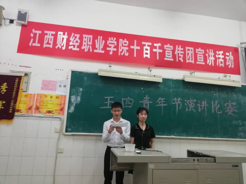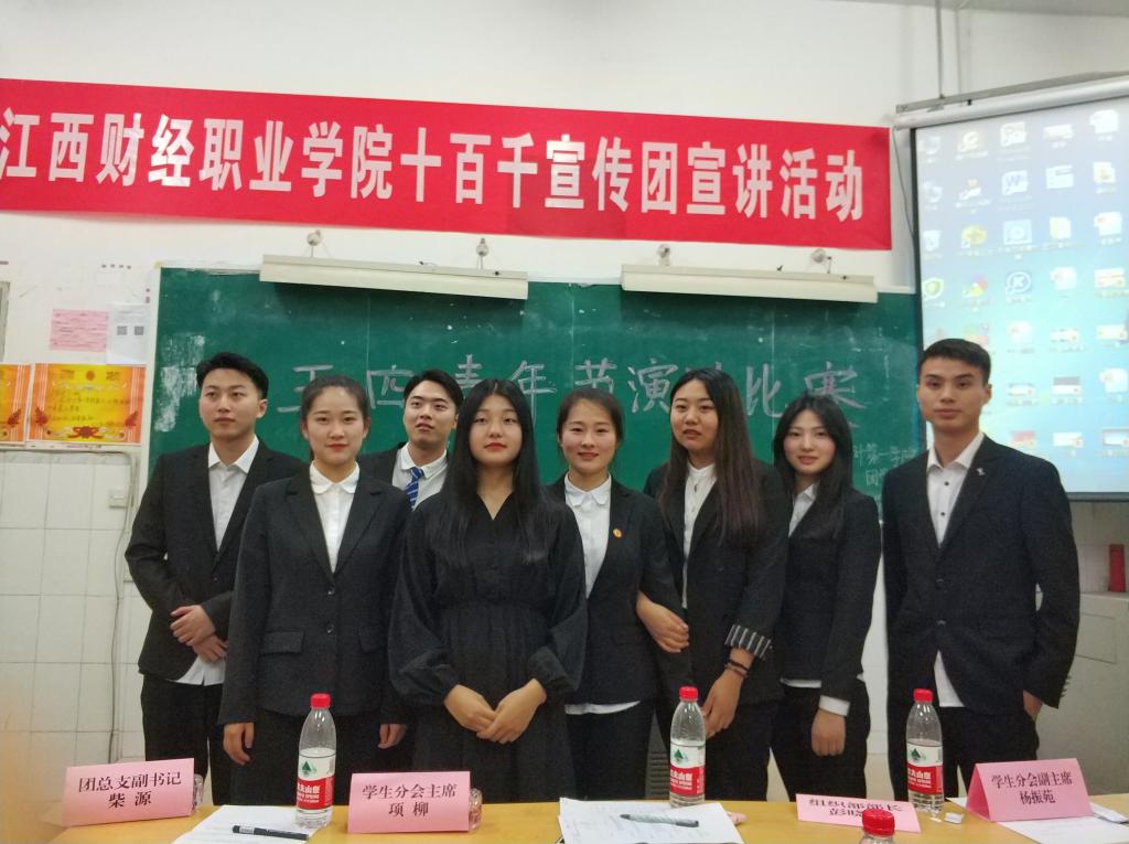 2019年6月10日19時,由江西財經職業學院會計第一學院團總支學生會舉辦的“傳承五四精神,爭做時代驕子”演講比賽決賽在教學樓108教室成功舉行。本次演講比賽由會計第一學院主持隊領隊張炳榕帶領主持。比賽在主持人精彩的開場白中拉開序幕。